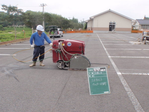使用道路切割电锯,进行地基基坑位置,沥青混凝土路面的切割作业。