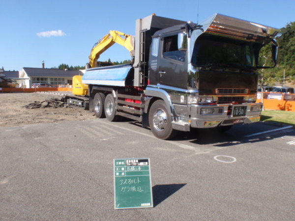 原先停车场的沥青混凝土路面,挖掘以后,产生的建筑垃圾,使用卡车运走。