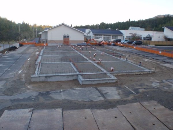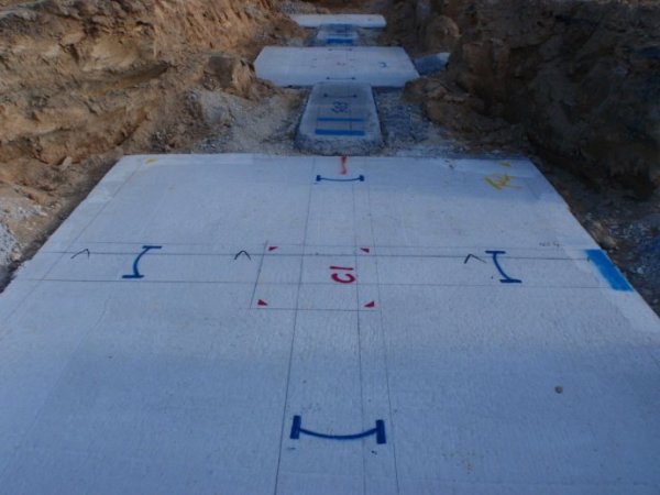 混凝土基础,经过凝结硬化养护之后,已经拆除模板时的基础施工现场全景。