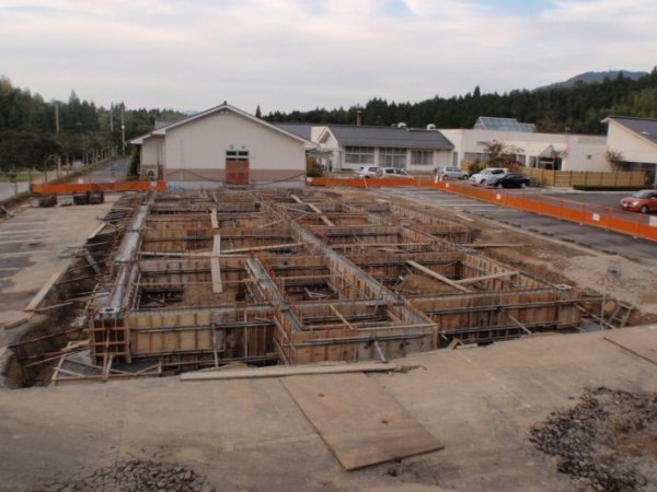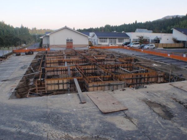 混凝土浇注之后的基础施工现场全景