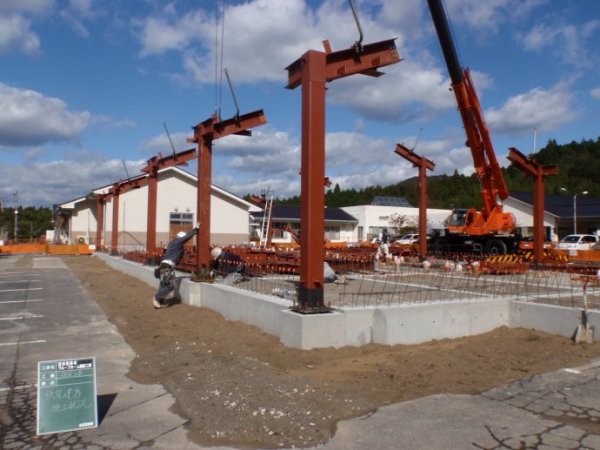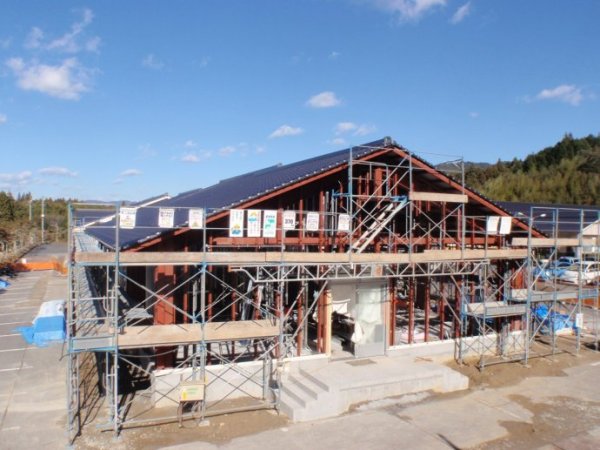 钢结构住宅,屋面构造完工时的施工现场的外观一瞥。