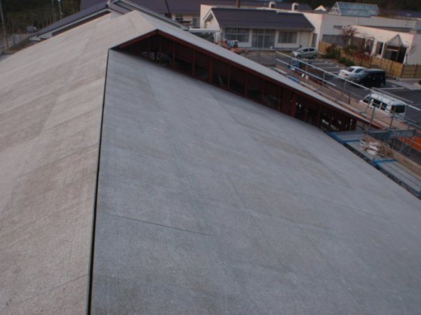 双坡屋面上,耐火屋面板的上部,铺设优质的沥青油毡防水卷材。