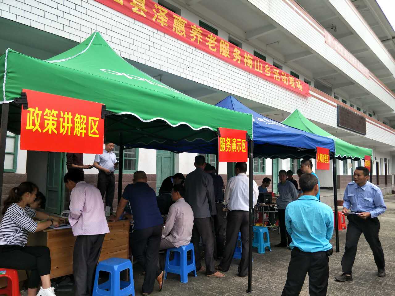 2017年5月8日至10日,泽惠养老服务中心工作人员到梅山乡政府大院现场办理居家养老服务,在乡民政办的安排下,全乡20个村的对象有序地办理了服务。全乡符合居家养老服务条件的对象716人,到现场办理了611人(发放一键通4G手机部),到位率达85.3%。截止到10日,全县共办理服务5068人(发放一键通4G手机5068部),线下实体援助服务487人次。